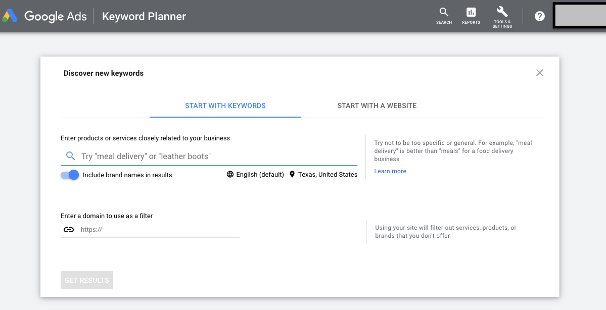 To do this, you first have to configure the tool, it's very simple: you have to select the option "show only ideas directly related to my search terms" and search only for terms related to your search: